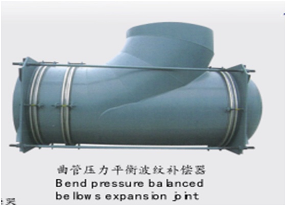 該類補償器是由兩個工作波紋管,一個平衡波紋管、端接管、中間接管、彎頭、封頭和端板及平衡推桿等裝置組成,其中平衡推桿在端板連接處帶有球面和錐面墊圈構成滑動體,動全在補償器進行橫向補償時自行調整。壓力平衡型補償器可以對彎曲管段產(chǎn)生的橫向位移通過工作波紋管補償吸收,工作波紋管同時補償吸收直管段內的軸向位移并通過平衡波紋和被平衡,該補償器一般用于“T”型和“空間門”型管道的位移補償,軸向剛度值為工作波紋管與平衡波紋管之和,軸向剛度較大,因此彈反力較大,該型補償器能平衡介質壓力推力。